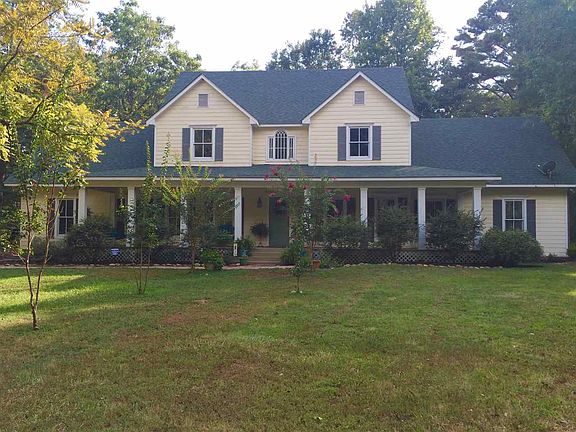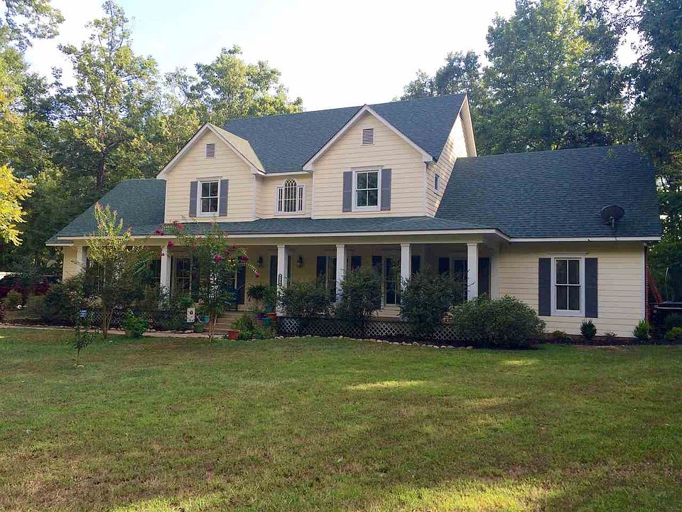 This beautifully situated custom built home has a water view of large pond, sitting amidst many mature hardwood trees on 5 acres and is in excellent condition. Newly repainted in most rooms, new architectural roof, AC units, tankless water heater, plumbing fixtures, and granite slab for kitchen countertops, island and bathroom counters. Master bedroom suite is downstairs with sitting area, a wall of 2 additional closets, TV cabinet and two other cabinets as well as built-in ironing board and 6 large drawers; large walk-in closet. The large master bath features two person jetted jacuzzi and large shower with rainhead faucet and slab granite bench, his/her sinks and a separate water closet. Formal living and dining rooms, family room and sunroom which sits off kitchen. Cook's kitchen with butler's pantry and double door pantry, with guest bathroom featuring pedestal sink and claw- footed antique tub. Glass doorknobs, 9 foot ceilings, beautiful crown molding throughout downstairs. Large Double car garage, 4 attic accessses-Storage galore. 4 large bedrooms upstairs plus a huge bonus room for office/exercise or play room. It has two built in computer desks with slide out keyboard trays and caninets, book cases and a 9 drawer built in filing cabinet. Upstairs bath newly renovated with granite, flooring and shower door. Click on picture of house to see additional photos.