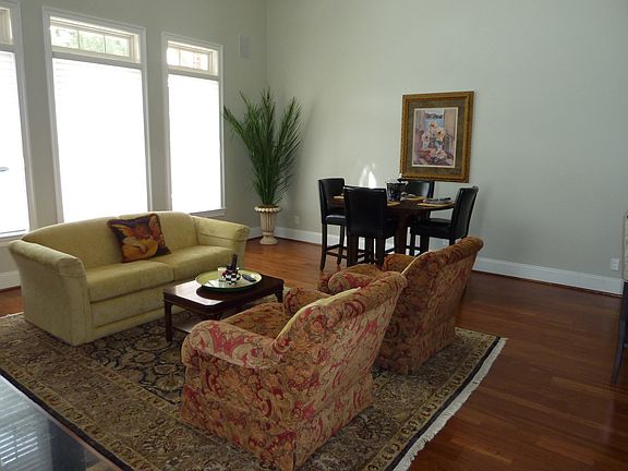 Private end unit surrounded by greenery. Bright open floor plan. Dramatic 2 story GR opens to gourmet upgraded kitchen with lime stone floors. Exotic hard woods. crown moldings, granite counter tops, surround sound, covered front patio, 8ft doors, silhouette type window shades, First floor master, tray ceiling custom master closet built ins. French doors leading to outdoor balcony. Large loft area is perfect for additional living area and /or office. Breakfast RM chandelier does not convey.