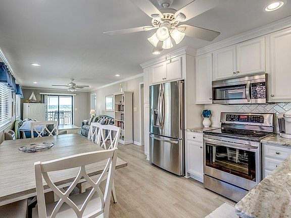 RARE opportunity to own this completely remodeled top floor Inlet Point Villas condo in Cherry Grove. The most impressive feature of this (2) bedroom, (2) bath condo is your view off your balcony overlooking the impressive Atlantic Ocean, House Creek and the natural preserve of Hog Island. Privacy and peacefulness is what this view will give you as you will not find another view like this in the area. The features do not stop with your view as this condo has a custom remodeled floorplan upgraded from top to bottom with todays modern upgrades giving you a master suite with luxury bathroom. Your kitchen features all stainless steel appliances, new upgraded soft close kitchen cabinets, Andromeda White Granite with a brown and sea foam green flex, herringbone white subway tile backsplash, under cabinet lighting and additional kitchen cabinets for a pantry. An upgrade to add more privacy between the bedrooms is the hallway has been blocked off to give you the ultimate split floor plan and additional master bathroom space. Your master bathroom sits at the back of the condo encompassing a beautiful view of the ocean and creek. Also the perfection of this condo has been outfitted with custom French bedroom doors, ceiling fan, crown molding and a King size bed. The master bathroom is a dream as you are given a floor to ceiling sandstone tiled shower, glass doors and java tan pebble floor tile. Dual sinks, new vanity with a granite countertop, new vanity lights with an added feature of built-in nightlights and a pocket door. Other features of this condo include smooth ceilings with recessed lighting, sandstone luxury vinyl plank flooring throughout, upgraded windows & new blinds, full size washer & dryer, new hot water heater, fully furnished including a MalibuTwoXL Ocean Kayak, 2 new stand up paddle boards and a full storage bin of pool/swimming gear. Inlet Point Villas sits at the very end of the peninsula of Cherry Grove giving the ultimate privacy along with amenities including a pool, tennis court and a gate. Inlet Point Villas is located in Cherry Grove of North Myrtle Beach which gives you a short quick drive to the OD, Main Street, Cherry Grove Pier and all the areas main attractions, restaurants, shopping and entertainment.