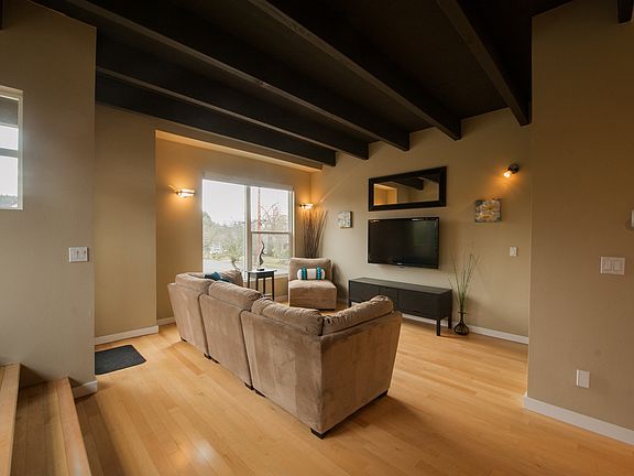 PV SOLAR system included in the sale. Open floor plan on the main features maple floors, large windows, furnished kitchen and tall ceilings. Jetted tub and radiant heat floors in the upstairs bathroom. South facing end unit with 3 balconies. Just a few blocks from the MAX and great highway access. Backyard is fenced with a concrete patio. Central A/C and central vacuum system. No HOA dues.