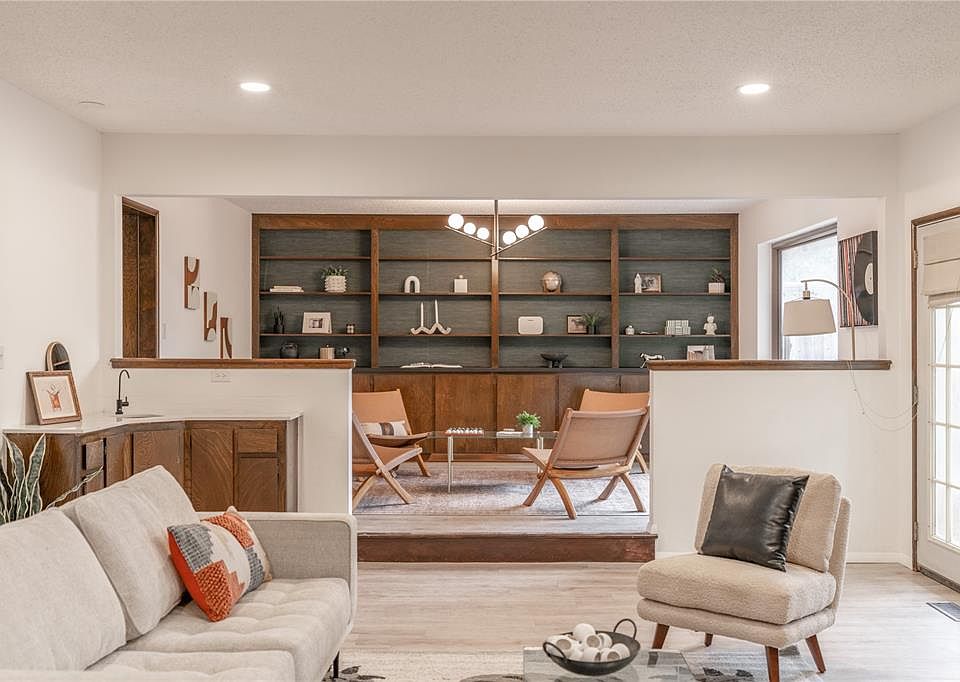 Here's a rare opportunity to own a beautifully remodeled mid-century gem in Northwest OKC, offering the perfect blend of new and old. This 4-bedroom, 2.5-bath home retains its classic charm with original refinished cabinetry and a mid-century tiled backsplash in the kitchen, perfectly complemented by sleek quartz countertops. Enjoy entertaining in the formal dining area with its stunning floor-to-ceiling windows and built-in cabinets. The cozy living room features a painted brick fireplace, a wall of paneled built-in cabinets, and a corner wet bar with quartz countertops, flowing seamlessly into an additional living area or study boasting a full wall of built-ins and an oversized window. Spacious bedrooms provide ample storage, and the primary suite offers multiple closets, an updated vanity with quartz countertops and gold hardware, and a newly tiled walk-in shower with matching gold trim. Don't miss out on this unique property – schedule your showing today!