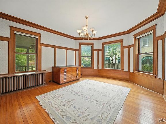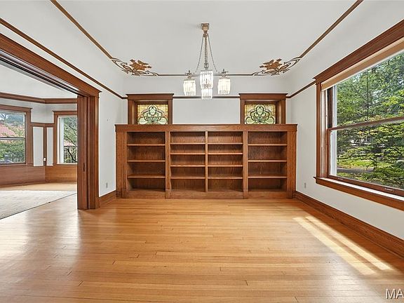 - Description: Built in bookcases , beautiful stained glass windows, hardwood floors, custom painting , custom millwork