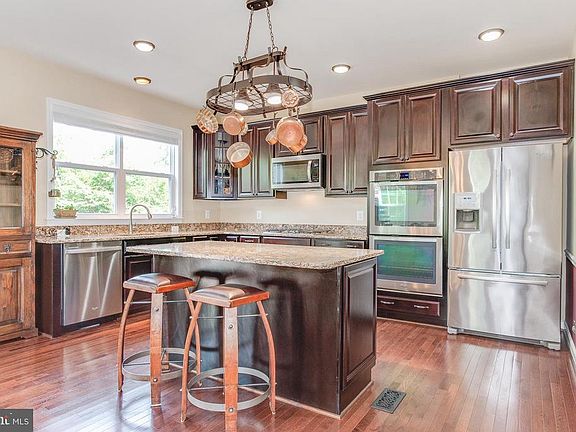 Remarkable 3BR 2.5BA end unit TH w/2-car gar backs to trees & boasts gorgeous hardwoods, tons of windows & incredible gourmet KIT w/granite, stainless apps, 42in cabs & center island that opens to Dining Rm w/SGD to deck. Spacious MBR features walkin & upgraded MBA w/soaking tub, glass shwr & dual vanity. W/D on upper lvl. Great LL Rec Rm w/ceramic tile & SGD to stone patio. Near 395/495 & Metro!