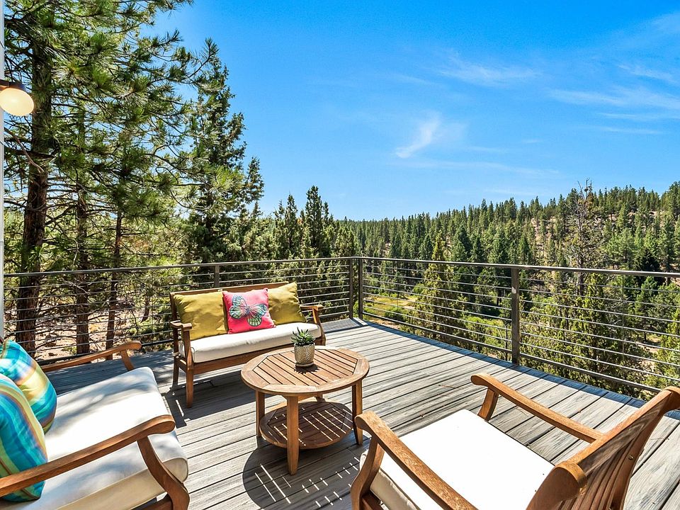 Entertain in this contemporary NW style home situated on a very valuable parcel of land In NW Bend. 7.44 acres adjacent to protected open space along Tumalo Creek, Minutes from Shevlin Park, The Deschutes River, Phil's Trail and Downtown Bend. This private oasis is an opportunity of a lifetime. Views of Mt. Bachelor, Tumalo Creek, pine covered hills and the grassy meadow below, with stands of aspen, willow and pine. Hear the peaceful sounds of the creek while enjoying the wraparound deck. Hiking and biking opportunities are endless.