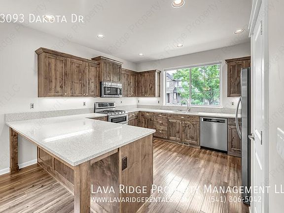 Beautiful 4-Bedroom Home in Lava Ridge $3,495/month | Available Now 63093 Dakota Dr, Bend, OR 97701 Details: 4 Bedrooms | 2.5 Bathrooms | 2,287 Sq Ft 2.5-Car Garage | Pet Friendly (with approval) $3,495/month | $3,695 Deposit 12-Month Lease | Available Now Welcome to this impeccably maintained home in the highly sought-after Lava Ridge neighborhood! With inviting curb appeal and a welcoming front entry framed by stone accents, this two-story home offers both comfort and style. Inside, enjoy a spacious open floor plan with luxury vinyl plank flooring on the main level, an electric fireplace in the living area, and a dedicated office or den. The gourmet kitchen features quartz countertops, stainless steel appliances (including a 5-burner gas range), a pantry, and an eating bar. Upstairs, the expansive primary suite features tray ceilings with a fan, plush carpet, a walk-in California closet, dual vanities, and a custom walk-in shower. Three additional bedrooms, a full bath, and a laundry room (with washer and dryer included) provide space and convenience for all. The private backyard is a low-maintenance retreat with a large patio, lava rock outcroppings, and a paver pathideal for relaxing or entertaining. Highlights: Central heating & A/C with whole-house air purifier + humidifier Ceiling fans throughout Oversized 2.5-car garage with storage space Carpeted bedrooms, LVP downstairs Washer & dryer included Community pool access HOA-maintained front landscaping Nearby Schools: Ponderosa Elementary | Sky View Middle | Mt. View High Resident Responsible For: Electricity, gas, water, sewer, garbage, internet, backyard landscaping 2 Stories Appliance Dishwasher Appliance Garbage Disposal Appliance Ice Maker Appliance Microwave Appliance Oven/Range Appliance Refrigerator Carpet Cat Friendly Ceiling Fan(s) Central Heating & Cooling Community Pool Dog Friendly Double Car Garage Double Sinks Master Bath Driveway Electric Fireplace Electricity Resident Responsible Garage Attached Garbage Resident Responsible Gas Resident Responsibility Gas Fireplace Hardwood Internet Residents Responsibility Landscape Hoa Maintains Landscape Resident Maintains Laundry Closet Laundry Room Lawn On Street Parking School Mt. View High School Ponderosa Elementary School Sky View Middle Sewer Resident Responsible Unfurnished Walk In Shower Water Resident Responsible