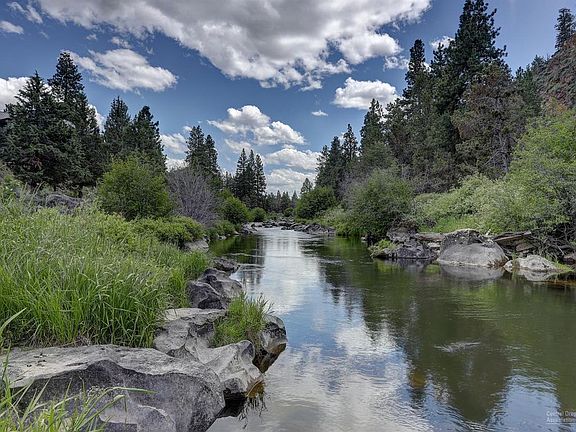 Casually elegant one level home on 1/2 acre w/Deschutes river views & a coveted short-term vacation rental permit. Easy access to the river, trails, Sawyer Park. Gated entry. 3 bedrooms, 2.5 baths & small office. High end finishes, gorgeous hardwood & stone floors & custom built-ins. Great room w/wood burning fireplace, dining area & gourmet kitchen open to living & dining with stainless steel appliances. The Master suite has stunning river views, deck access, a huge walk-in closet & bath w/marble floors & large soaking tub. Enjoy the best of indoor/outdoor living on the large deck for entertaining or relax in the hot tub with the views & sound of the river. Large utility room with tons of cabinetry & heated finished bonus room off lower deck. Generous parking & turn around area, covered breezeway & over-sized garage. This is a special opportunity to own a home that offers not just the views but easy access to the river as well, perfect for your private getaway or for use as a VRBO.