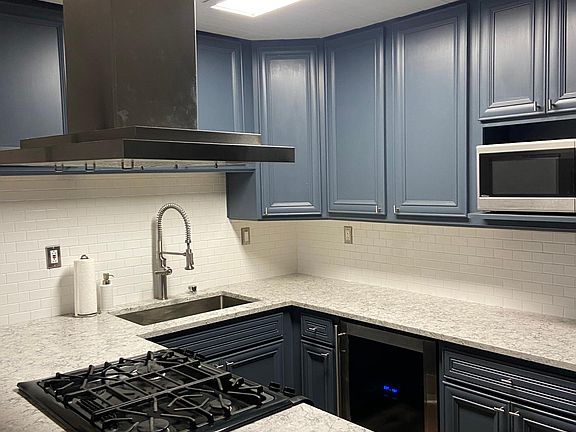 Modern home with upgraded cabinets, under cabinet lighting, and granite countertops