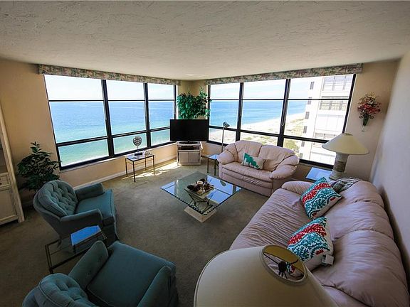 PRICED TO SELL! Have you been looking for a Gulf-front condo in Venice? Look no further! The moment you walk into this condo home you can't miss the incredible water views. Panoramic water views from almost every room in this open 2 bedroom, 2 bath, 1,284 square feet condo in Valencia on the Gulf. Enjoy the serenity of gazing out at the beautiful Gulf of Mexico with passing sailboats and jumping dolphins. Appreciate evening beverages and appetizers while relishing amazing sunsets from your screened lanai as well as living room. Valencia on the Gulf includes 376' of private beach and numerous amenities including large beach-side pool(heated), fitness room, party room with full kitchen, shuffleboard court, conference room, assigned/covered parking, bike storage, and personal storage area. Don't feel like cooking tonight? Walk to downtown Venice and enjoy all it has to offer for refreshments and entertainment. Recent updates to the community have included lobbies, elevators, new fire-safety sprinkler systems, and refurbished plumbing stacks/lines. This unit comes furnished for your convenience. New a/c. All windows in family room and 2nd bedroom were replaced with impact glass in 2006 or 7. Sliding glass door in dining room was replaced at the same time. This condo is ready for you to enjoy! Full Gulf-front units rarely come on the market in this community. Don't wait - call to see this one today!