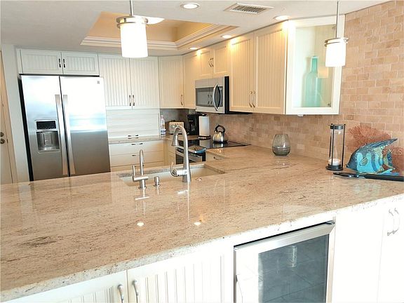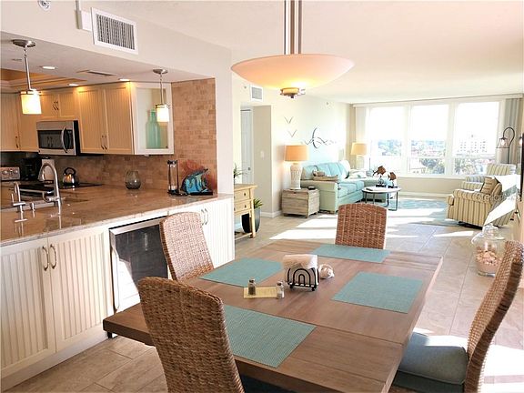 Venice Island Beach Condo steps from the Beach with Panoramic views of the Gulf from the 7th floor! 2020 Season Available for a 3 month minimum- Venice Island Beach Condo steps from the Beach with Panoramic views of the Gulf from the 7th floor! This simply AMAZING Condo on Venice Island is located in the desirable Valencia Residence with a Beachside pool and sandy beaches. Fabulous open floor-plan with Island-to-Beach views, newly remodeled with attention to design for your seasonal living and entertaining. The Two bedrooms and two baths are nicely furnished, Light and bright, with just under 1300 square feet of living space. The Master Suite opens to the lanai with views of the Beach and a walk-in closet with adjoining private master bath with enclosed walk-in shower. You will enjoy the stylish and rich upgrades with a kitchen that will be enjoyed by the chef in the family. The Seventh-floor unit provides two large lanais for sweeping views and perfect for enjoying that morning cup of coffee, or taking in the Venice Island living! Imagine enjoying your day at the Beach-side pool and beach, then making your way to dinner at one of the local restaurants, and ending with a sunset stroll along the beach. Minutes from Entertainment, Restaurants, and the numerous amenities Venice has to offer golfing, fishing, boating, shopping, the arts, including the many Festivals throughout the year! ~Two Elevators, One assigned covered parking, and Washer & Dryer onsite, community room with kitchen for social events