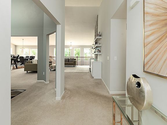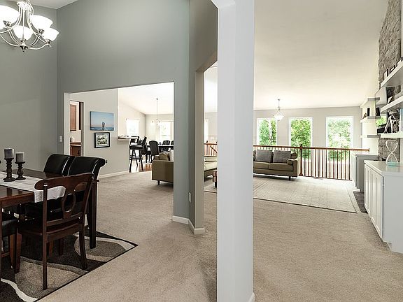 Newly updated and painted this stunning atrium ranch home sits on a half acre tree-lined lot. As you enter the foyer, you are greeted by a space perfect for an exquisite dining room, office, sitting room, etc. Great room is spacious and inviting w/ it's views of the woods, fireplace, and soaring vaulted ceilings. Kitchen boasts wood floors, towering maple cabinets, and eat-in breakfast area which accesses the freshly stained deck perfect for enjoying that morning cup of coffee or indulging in the sunset views. 4 beds on main floor include a master suite with walk-in closet and bath w/ soaking tub, separate shower, dual vanities. & toilet area. A new custom sliding barn style door leads you into the finished lower level perfect for a second separate living area. You will be blown away by the awesome custom bar and recreation area, 5th bed w/walk-in closet, & full bath shared with rec area. Walk out onto the stone patio with fire pit for outdoor entertaining.
