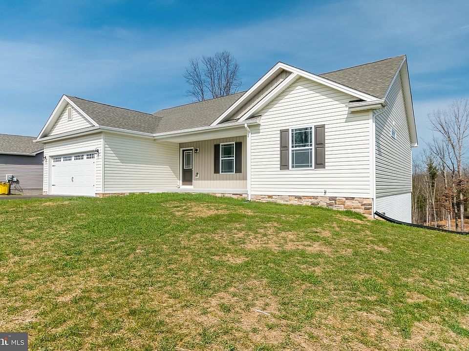BACK ON THE MARKET!! Move-in ready, Gorgeous Semi-custom Rancher located in MIDDLE CREEK MANOR with 1700 + sq ft. of living space on the main level and an additional 525 finished on the lower level. Home has 4 bedrooms, 3 bathrooms, Cathedral ceiling in Living Room with gas fireplace. The kitchen has 36-inch cabinets, a pantry, stainless appliances, quartz countertops & separate center island. The Primary Bedroom has a large walk-in closet, a primary bath with double vanities, and an oversized walk-in shower. All the bedrooms are carpeted. Coretec-luxury vinyl plank flooring in Kitchen, Living Room, Dining Room, Bathrooms, Laundry Room, and Foyer. The basement has a side walk-out entrance, a 4th bedroom, and a 3rd bath. Over half the basement is ready for you to complete. The 2-car attached garage has an insulated garage door and opener. The home has an active Radon Mitigation system in place! The house has a covered front porch and stone trim across the front. As with all new construction, Transfer taxes are paid by the Buyer.