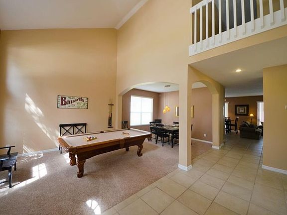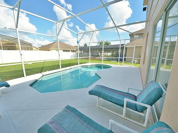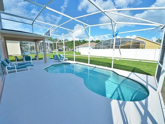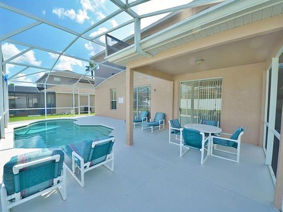 Fantastic floorplan in this 6 bedroom 4 bath home located in the Highlands Reserve Golf community. Recently painted both inside and outside, New AC and all new carpet upstairs and in living / dining room combo. A large eat-in kitchen with plenty of cabinet space, center island and closet pantry is open to the spacious family room. One bedroom and full bath on first level. Upstairs are 5 additional bedrooms and 3 bathrooms. This home is being sold fully furnished and has been used as a vacation rental by the current owners. Enjoy your morning coffee and watch the sunrise while sitting by your private, screened in pool. The golf enthusiast will enjoy remarkable scenery on this top rated Central Florida golf course. Highlands Reserve is a quiet community minutes from area attractions, shopping, supermarkets, area schools and more.