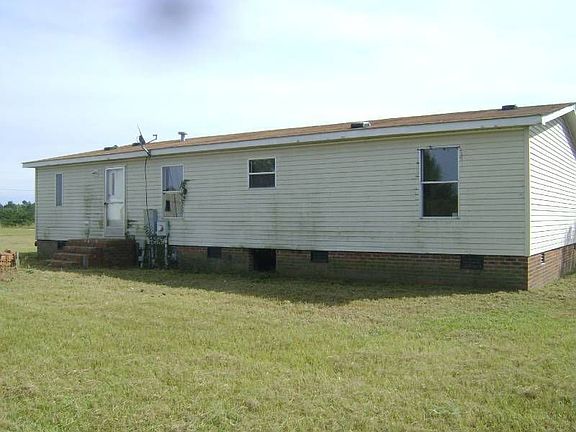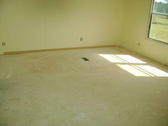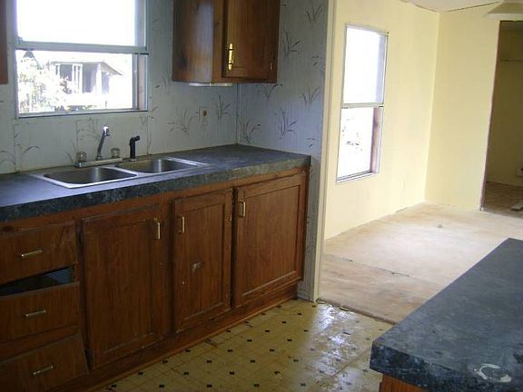 Exterior Features: Beige & blue single story mobile home is on a large lot, home has fair curb appeal, looks to be in nice shape overall. Siding: Wood/vinyl exterior wall looks in good shape, no damage present. Windows: Intact. Soffits and Eaves: Intact. SF: (Lot) 90169. SF: (Home) 1568. Patio/Porch: Brick/concrete patio in front of home and wood patio in rear. Roof: Asphalt shingle, seems to be in good shape, no major damage visible. Driveway: Dirt/gravel. Interior Features: Seems to be in fairly nice shape overall, needs flooring in most rooms, looks mostly clean and free of any damage, no major issues present. Living Room: White walls, concrete floor, room looks fine but is unfinished. Dining Room: None. Kitchen: Vinyl floor, walls looks healthy, cabinets & sink are intact, looks in fair shape overall. Bathroom: (1) Vinyl floor, toilet, tub, & two sinks, is in nice shape (2) Vinyl floor, white walls, appliances are intact, looks in good condition. Bedroom: Are all similar: White walls & trim, concrete floor, closet space, look clean and healthy overall. Basement: None. Mechanics: Unknown. Garage: None.