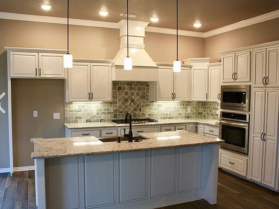 4BR, 2 bath, 3 car garage. Office area built into hallway. Both garages fully insulated. Property backs up to city walking trail. Central heat/air, gas kitchen range, natural gas line outlet on back patio. Privacy fence is 1 year old.