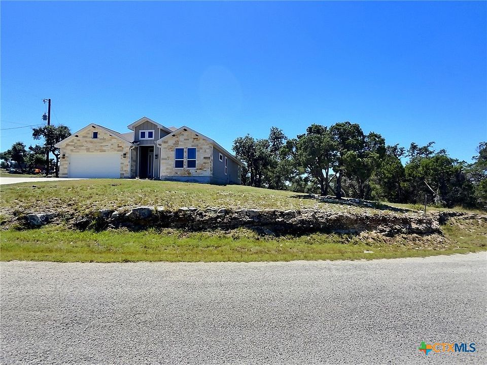Stunning 3 bedroom 2 bath home in The Legends at Rancho Del Lago ready and waiting for you! Enjoy the beautiful drive up as you make your way through the hilltop community. This gently lived in home is situated on the top of a hill with amazing views on a cul-de-sac. Immediately find yourself basking in the sunlight as you walk through the front door. Soaring ceilings and oversized windows provide big views from every room. Attention to detail can be seen throughout the entire property. Some of the upgrades that make this home luxury living that maximize comfort are the oversized laundry room, water softener installed, and beautiful patio, fire pit, and landscaped yard. Schedule your showing today and claim your home in the Texas Hill Country.
