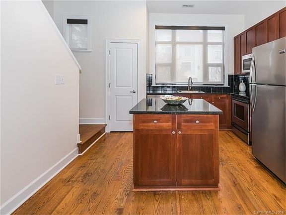 This terrific first ward townhome style condo offers a great urban living experience w/the convenience of being able to walk to a Hornets game or to your favorite uptown restaurant/bar. Spacious open floor plan w/living & dining area leading to fully equipped kitchen w/ss appliances, granite counter tops & kitchen island ideal for food prep or casual entertaining. A private owners suite on the upper level provides a large master bdrm suite with a full bath plus an office/sitting rm adjacent to the bdrm. The rooftop terrace boasts panoramic views of uptown Charlotte & plenty of space for entertaining or a private getaway. The lower level second bdrm & full bath plus den/exercise/office can also be accessed from the private enclosed ground level patio. The ground level fenced patio can easily handle a grill & be used for entertaining & relaxing. Owner has a home warranty w/2-10 that is good for almost a year & will be transferred to the new owner. Washer/dryer/refrigerator included.