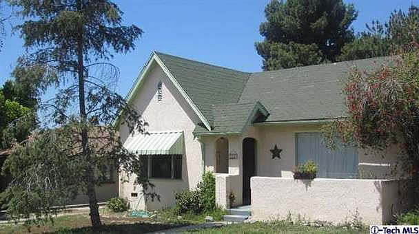 Tudor style home needs some TLC! Offers: 2 bedrooms, oversized living room with fireplace, formal dining, roomy kitchen with original charm, hardwood floors, large attic, large covered patio, bonus room behind garage used as office. Large flat lot with potential.