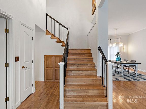Beautifully updated home in Lakewood! Remodeled kitchen features beautiful gray and white cabinets, quartz counters, subway tile backsplash, apron sink, island/breakfast bar, stainless steel appliances, double ovens, 36" gas range, 2 sinks, pot filler, mixer spring also new hardware and fixtures. Open floor plan with great room, living room and formal dining room. Gas fireplace with hearth and mantle, new hardwood floors, new paint, new light fixtures, crown molding and a stunning staircase entry. Master suite features vaulted ceilings, dual sinks, granite counters, tile shower and walk-in closet. 1 bed/office with built-ins on main level and full bathroom. Upstairs features 4 bedrooms plus flex space/gym room. Beautifully landscaped nearly 1/3 acre yard with large deck, full fencing, new stamped concrete and auto sprinklers. Great location close to parks, shopping, restaurants, downtown, BSU, airport, freeway and more.