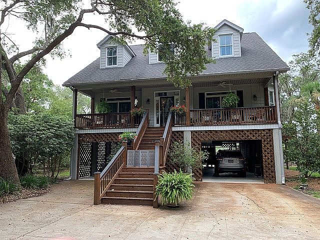 Beautiful water-front property with newly constructed dock. Sunset views from seated dock area in scenic salt marsh. Exterior amenities include front porch, rear enclosed deck. shower, and fire pit. Elevated construction with 2 storage rooms on ground level. Reverse osmosis water and septic system. Two unit HVAC.