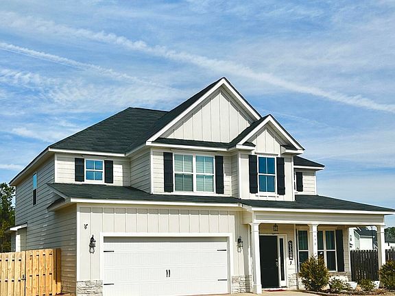 Introducing The Cooper plan by South Georgia Homes, a stunning 2388 sq ft 2-story residence boasting 4 bedrooms and 2.5 baths. Step into the inviting foyer leading to the elegant dining room adorned with judges paneling and coffered ceilings. The kitchen offers shaker cabinets, SS farmhouse sink, SS appliances, tile backsplash, granite counters, and ample storage. Enjoy the open concept of the great room with a fireplace and a covered porch off the breakfast room. The master bedroom impresses with an en suite bath featuring a separate shower, garden tub with tile surround, double vanities, granite counters, and a walk-in closet. Three additional bedrooms share a well-appointed hall bathroom. Complete with EVACORE waterproof flooring, fully landscaped yard, and irrigation, this home is situated in Greenpoint, Harlem's premier master-planned community, offering street lights, sidewalks, and green space parks for residents' enjoyment.