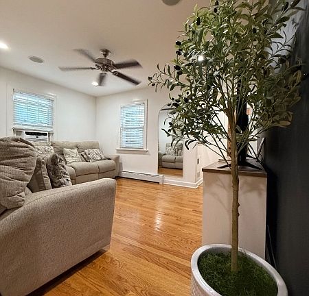 Welcome to this beautifully updated 3-bedroom, 2.5-bathroom home nestled on a quiet street with golf course views! Each level boasts its own bathroom for added convenience, including a half bath on the second floor. Enjoy oversized rooms filled with natural light, stunning hardwood floors throughout, and an elegant kitchen featuring a grandeur island, sleek recessed lighting, and modern finishes. The dining room flows seamlessly through sliding doors onto a spacious deck perfect for entertaining. This turnkey home also features heated floors In first floor bathroom, finished basement, and a backyard oasis with two separate outdoor sections and a cozy fire pit area overlooking the golf course. A true commuter's dream with easy access to NYC transit.