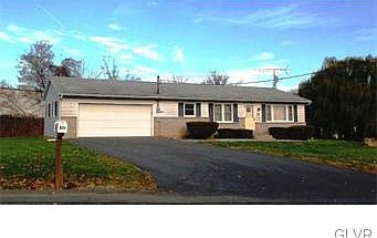 AVAILABLE NOW -- Parkland S.D. 3 BR 1 Bath Ranch with oversized 2 Car Garage on 1 acre. Country Eat-in Kitchen with Laundry Hook-Up. Home has Hardwood Floors in LR, Hall & BR's. Pull Down Ladder in Garage for Storage. No Basement. NO PETS. NO SMOKING. NO SECTION 8. REQUIRED ONE YEAR LEASE or more. Owner will cut the grass. Tenant responsible for electric, trash removal, trimming shrubs, weedwacking around shrubs, deck & home, snow removal of sidewalk & driveway. Minutes to Turnpike, I-78, 309, 22, 222 & Rt. 100. Conv. to Shopping Areas, Grocery Stores, Hospitals & Lone Lane Park. 12/15/15