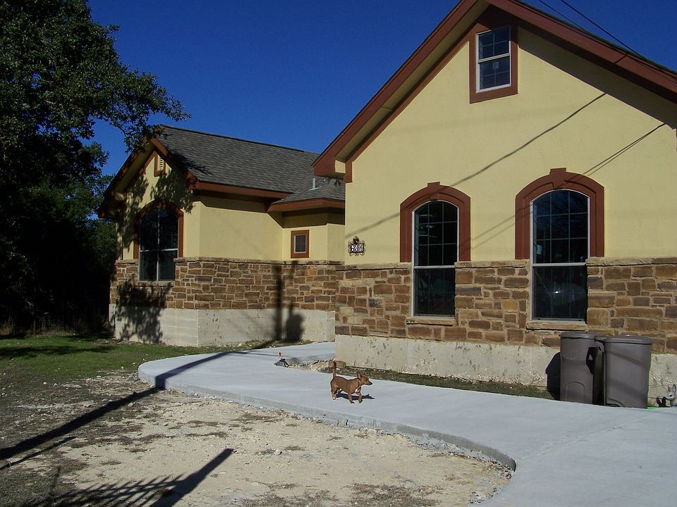 Charming custom home on a third of an acre, beautiful oak tree in front and rear in Spring Branch. Open floor plan. Two living areas both wired for surround sound. 4 bedrooms and two full baths. One bedroom is used as an office. Master bathroom with granite counter single vanity, pre-plumbed for a second sink. Garden tub has whirlpool. Two master closets. Granite in kitchen and stainless steel appliances. Breakfast room and formal dining room. New energy efficient low-E double hung windows. Recently installed water softener. Aerobic septic installed 3 years ago. Solar panels. Security camera system stays. Intercom. Lots of storage. Storage space above garage. Fans in all bedrooms and living room. Covered patio in back. Storage building plus workshop.