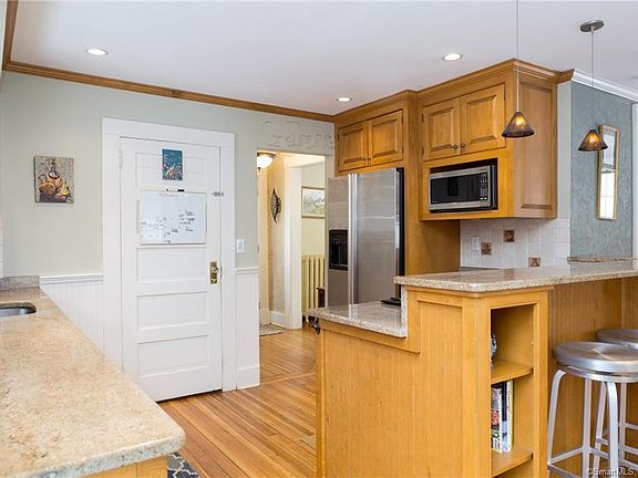 Charming 3 bedroom, 2 full bath Colonial near the heart of Simsbury center. Beautifully remodeled country kitchen with granite counters, stainless appliances and an island with eating space. Spacious bonus room on the 3rd floor, perfect for a den, office or playroom. The inviting dining room and living room are ideal for entertaining with an open concept type of flow. The charm of yesteryear abounds with all of today's updates! You will love the gleaming hardwood floors throughout and adorable front porch. Enjoy your outdoor living space as you move the party to the private patio in the back with darling white picket fence. You even have a 1 car garage to keep your car snow free! Move in condition, new water heater in 2016 and maintenance free public utilities make this home a breeze to take care of! Conveniently located near the bike path, Brookside Bagels, Table 570, the center of town and so much more!