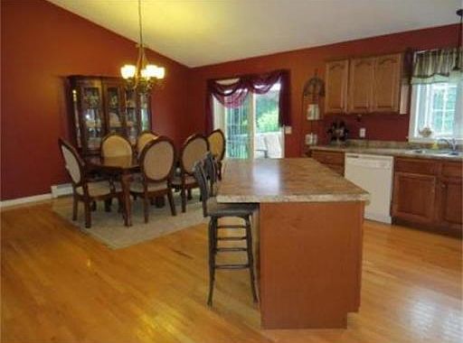 **OPEN HOUSE 10/12/14 from NOON-2PM.Come see this IMMACULATE young split on large level lot. This 3 bed, 2 bath home has a great open floor plan with cathedral ceilings in the living and dining areas. Living room has a pellet stove which cuts down on oil consumption!! The cabinet packed kitchen has the benefit of a large center island, maple cabinets and hardwood floors. Slider in the kitchen area leads to a spacious deck overlooking the large private back yard. First floor laundry room has a tiled floor. The master bedroom has hardwood floors, large walk-in closet and master bath. The finished basement is an added bonus and has electric heat. It boasts a large family room with a bar area. Theres rough plumbing waiting for a 3rd bathroom to be added. Great for commuters being close to 90, 84 & 20. MOTIVATED SELLER!