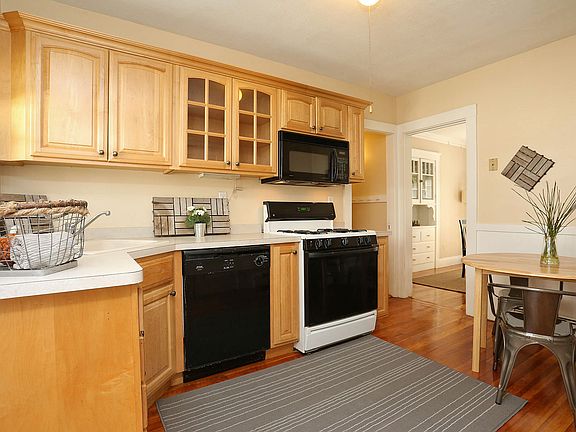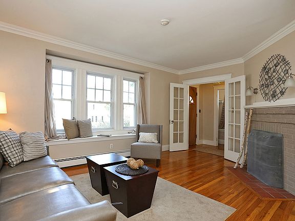 Charming 2 bedroom bungalow combines early 1900s detail with many amenities and updates. Character abounds: original molding and built-ins, newly refinished hardwood floors, and cozy screened-in front porch. There is an eat-in-kitchen with deck access, a large pantry, ample cabinets and counters, and gas cooking. The living room has a handsome fireplace, French doors, and columned bookshelves. A lovely built-in china cabinet graces the dining rooms. The bathroom is tiled and is adjacent to a linen closet. Features include one-car garage plus parking for 4 additional cars, level yard, full unfinished basement with washer/dryer, and a storage attic. Included among updates are newer tilt-in windows, gas boiler, and perimeter drain. This wonderful home is conveniently located to shops, restaurants, and the commuter rail. See OFFER GUIDELINES and INFO attached to MLS. FIRST SHOWINGS at open house on Saturday 9/19. Offers if will not be presented to owner until 3pm on Tuesday 9/22.