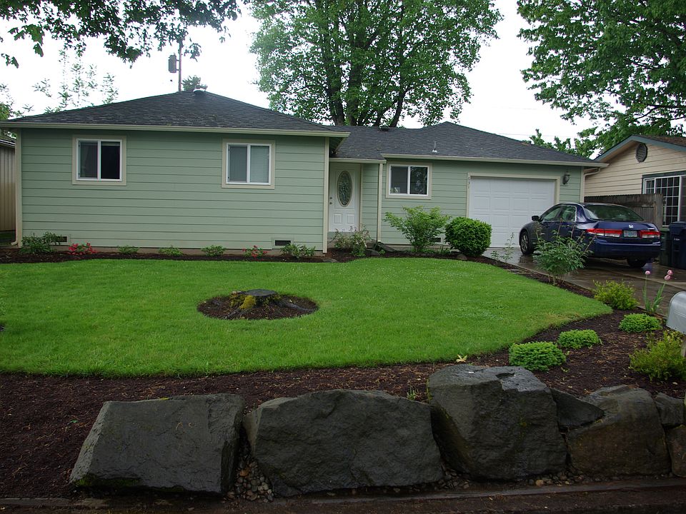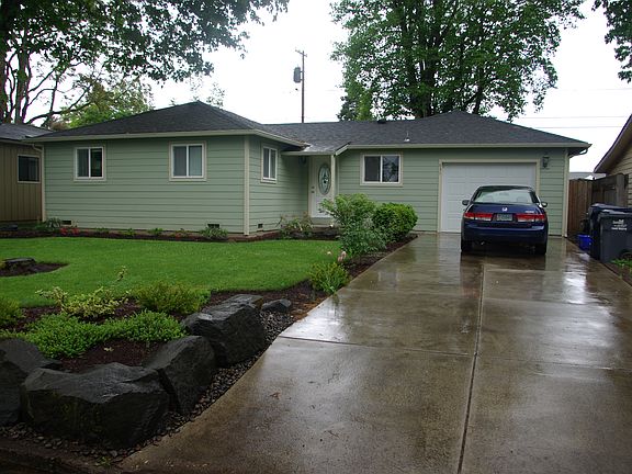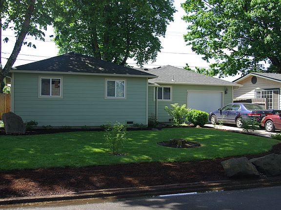 Lovely 3 bedroom 2 full bath home with lots of updates; including siding and vinyl windows, all without losing the 1940's charm. Oak hardwood flooring throughout, a vaulted ceiling in the living room, and all appliances stay in the kitchen. Spacious yard with mature landscaping, backyard patio, fully fenced, and a 1 car attached garage. Comes with a 1-year home warranty.