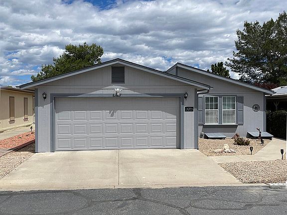 Live in the 55+ Community of the ''Villages at Lynx Creek'' and own your lot (no space rent). Built in 1998, this 2-bedroom 2-bathroom home is 1,344 sf and sits at ground level (no stairs). Includes a two-car garage with direct entry into house. Also, a 13 x 15 ft. bright, screened patio for entertaining, watching the sunrise while listening to the relaxing pond waterfall. Kitchen and both bathrooms have been substantially upgraded with Granite and solid surface counters. Electric outlet for Bidet at master toilet. New fixtures and ceiling fans in 2021. New vinyl plank flooring throughout with carpeted bedrooms in 2021. Complete exterior repaint in 2023. Washer, Dryer, Microwave and refrigerator are included with this home, also new oven and dishwasher in 2023. The back yard faces unimproved golf course property and gives a sense of openness while hosting a daily visit by Quail, Dove and Rabbits. There is also RV Storage available on site for any size rig for approximately $45/mo. Groome Airport shuttle picks up at the Villages Clubhouse. Monthly assoc. dues are $135 per month which includes water and trash dumpster along with access to the Villages extensive collection of recreational facilities. Available for quick escrow.