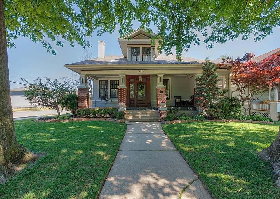 On offer is a beautiful bungalow located on one of Mesta Park's most storied and beautiful streets! Featuring three bedrooms, three bathrooms, multiple living spaces, an office, and an abundance of flex space, this is a home that could be enjoyed so many ways, by so many different types of residents. A covered front-porch, flanked by vibrant Maples and old-growth trees, welcomes guests and leads them into an original parlor. Downstairs, one will find multiple living spaces, a formal dining room, a fully renovated open kitchen with oversized west-facing windows, a roomy pantry, laundry/mud room, a bedroom, and two full bathrooms. Upstairs is a luxurious bathroom with a soaking tub, large shower, double vanities, and more, followed by two bedrooms, a study, and a playroom. Original features throughout include: hardwood floors, operable stained glass windows, working interior clear-glass transoms, lighting, and fireplaces. An extended garage features a shop area and two parking spaces. The backyard is beautifully shaded and landscaped, offering privacy and leisure space. Mesta Park is an enchanting community full of parks, sidewalks, tree canopies, and a wonderful community spirit. Surrounded by the Plaza District, Midtown, and Uptown, you are sure to enjoy the location. This is a chance to seize the opportunity to live on one of Oklahoma City's most delightful streets, in the heart of an equally delightful neighborhood.