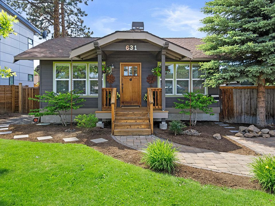 Rare Westside location. Wonderful, move in ready 1857 sq ft Craftsman style home. 2 bedrooms, 1 bath on the main level and 2 bedrooms and 1 bath below grade. Walking distance to 3 riverfront parks. Walking distance to downtown Bend, Old Mill and Les Schwab Amph, Restaurants and Brew Pubs. Close to Skiing, Phil's Trail Mtn BIking, Paddling on the Deschutes and Mountain lakes. Updated features incl Quartz counters and functional galley style kitchen. Outdoor living area with built in covered Lion BBQ & Granite counter. Fully enclosed backyard for pets. Paver patio, deck, Shop/Shed, outdoor gas fireplace and established hops garden. Remodeled single car garage converted to office with Pellet stove. Alley access and parking. Single car driveway in front. Original home remodeled in 2004. Insulated block foundation below grade. An amazing opportunity for investment or personal use. Seller is an Oregon Licensed Real Estate Broker.