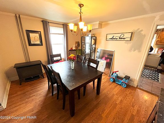 Awesome opportunity to purchase a 3 bed/1 bath Twin style home on the East side of Jim Thorpe! With tons of potential this home is just waiting for your TLC! The 1st fl spacious main living area & formal dining room both feature sleek hard surface flooring! Ample cabinetry & counterspace in the eat-in kitchen! 2 oversized bedrooms provide great potential for a primary bedroom, while the 3rd bedroom would make an excellent hobby room or at-home office! Enjoy grilling on the rear deck w/ stunning views of Mount Pisgah in the distance! Convenient fenced-in yard! Plenty of storage in the 3rd floor bonus room & concrete floor basement! Walking distance to East side amenities! A few minutes drive to downtown Jim Thorpe's shops & restaurants, Mauch Chunk Lake Park, Glen Onoko State Park, & more!