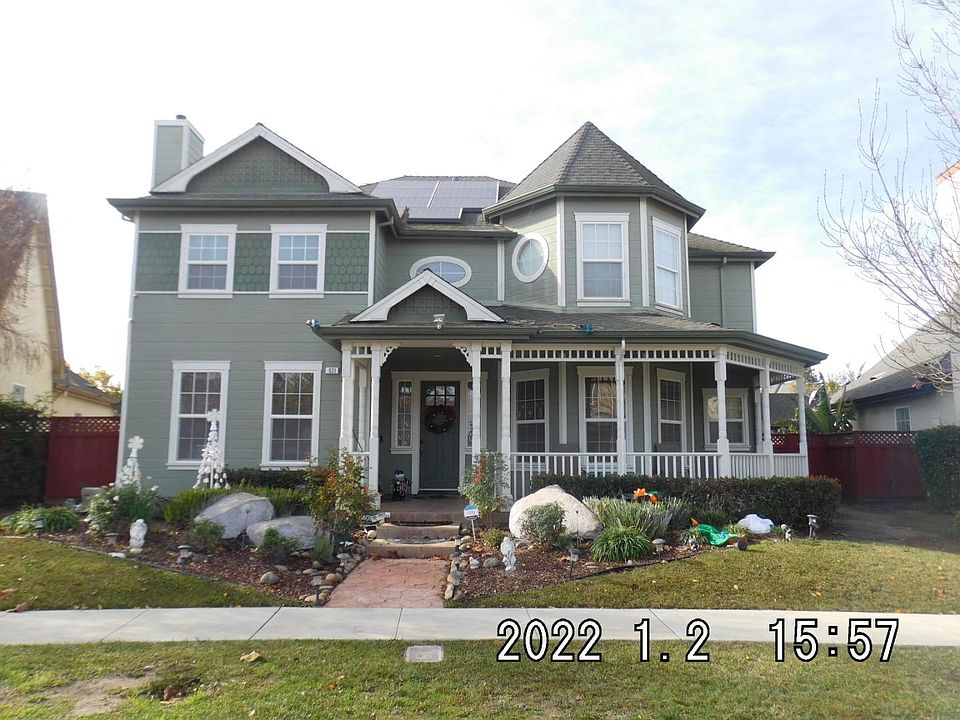 Rare Findings! Spacious main home with exterior Victorian style, front porch plus 5 bedrooms and three full bath. Tile kitchen counters are tile plus island for extra counter space. Spacious back yard between the detached three car and main house. Walk in closet in master . Fireplace in living room. Fireplace place in spacious master bedroom. Loft area upstairs for additional living space. Master bath includes a spa large soaking tub and double vanity. Guest Unit/Granny Unit tiled kitchen with gas range, living room area with one bedroom and one full bath. Located on top of three car garage. Wash area in garage.