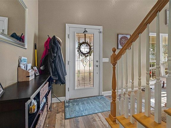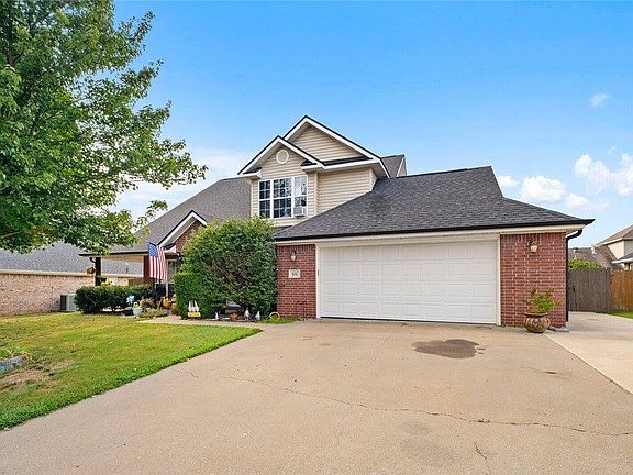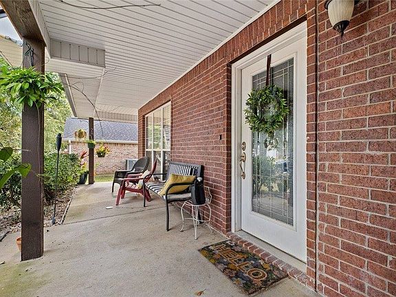 Charming 3-bedroom, 2.5-bath home with plenty of space to enjoy. The main living room boasts soaring vaulted ceilings—tall enough for that perfect holiday tree—while a second living area adds versatility for entertaining or relaxing. All bedrooms are located upstairs, offering privacy and comfort. Outside, you'll love the welcoming covered front porch and the backyard retreat featuring a spacious patio, built-in outdoor fireplace, and even a hammock post for lounging. This home offers the perfect balance of cozy indoor living and inviting outdoor spaces.