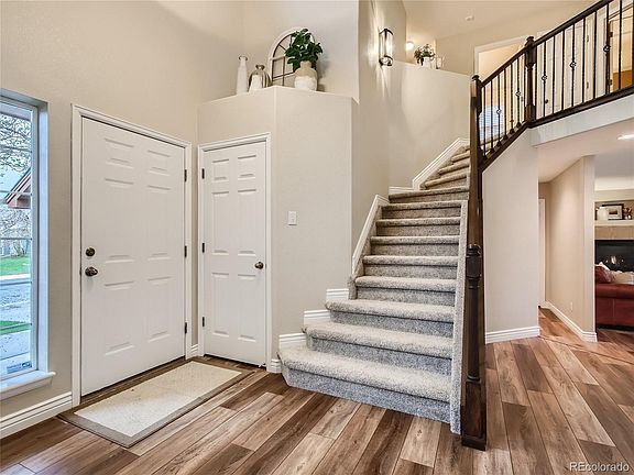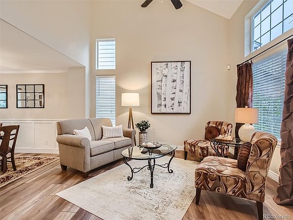 Beautiful two-story 3/4 bedroom, 2 1/2 bath home in the very desirable Founders Village neighborhood. As you walk in the front door you will find this home has an updated main floor and in model home condition. The kitchen offers granite countertops with black appliances, a breakfast nook with lots of cabinets and counter space, pantry, dining room, family room and living room. This home boasts neutral paint colors throughout and gorgeous LVP flooring throughout the main level. Built-in ceiling speakers in the master bedroom and family room with wiring on the back deck for speakers and volume control. Bright master bedroom with lots of natural lighting, 5piece bath, ceiling fan and a walk-in closet. Ceiling fans and recessed lighting on main floor. The yard offers mature trees, rose bushes with sprinklers in both front and back. Founders Village offers a large park, pool and access to walking paths. Close to downtown Castle Rock and shopping.