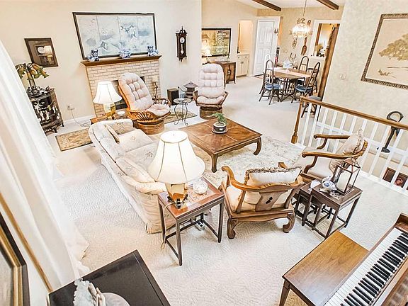 Don't miss out on this maintenance free home with picturesque riverside location walkable to Bittersweet Branch Public Library and Penn High School! Great room with gas log fireplace, skylights, and beamed cathedral ceilings overlooks the wooded rear yard with loads of outdoor living spaces including sunroom, paver patio, and rear deck! Eat-in kitchen features breakfast bar, stainless appliance package, and opens through to the formal dining area. Main floor master boasts private bath and loads of storage space from multiple closets including generously sized walk-in! And the finished lower level features built-ins, wet bar, additional full bath, and egressed fourth bedroom. Tons of great features and amenities with a location that can't be beat so don't wait - schedule your showing today! Seller offering an 18 month home warranty with 5 year roof leak warrant with the sale of the home!