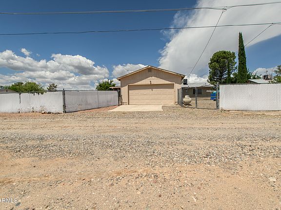 Great block home ready for its next owner to put their stamp on this Camp Verde single level. The home sits on a quarter acre with mountain views. The property is on city water and sewer but still has its own operating well for landscaping. The large yard has endless opportunities for gardens, RV storage, workshop, etc. There is a two car detached garage as the original garage was converted to an Arizona room for the home. The great room floor is open to the kitchen, with a wood burning fireplace, covered patio, large primary bedroom, walk in closets in both bedrooms, and a very quiet location. Close to everything in Camp Verde and everything Northern Arizona has to offer in Cottonwood, Prescott, Flagstaff areas and just two hours from Phoenix. Excellent opportunity to personalize a great property.