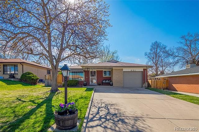 Don't miss this updated 1957 brick ranch located on the top of Valverde with full panoramic views of the Downtown Denver skyline. Unbelievable. The main level has been remodeled with a more open floor plan, spacious rooms, and three bedrooms up and down. The kitchen and dining space combine to give any family lots of room to cook, eat, laugh, share, and entertain. A cozy family room w/natural stone wall fireplace has unlimited possibilities as it opens onto a covered deck and large, fenced yard. The basement is complete and functional; possibly operates as a mother-in-law quarters with a private entrance. Don't miss the 1-car attached garage to keep your car sparkling clean. Valverde and this beautiful ranch are one of Denver's last bastions of affordability. Do not miss this opportunity.