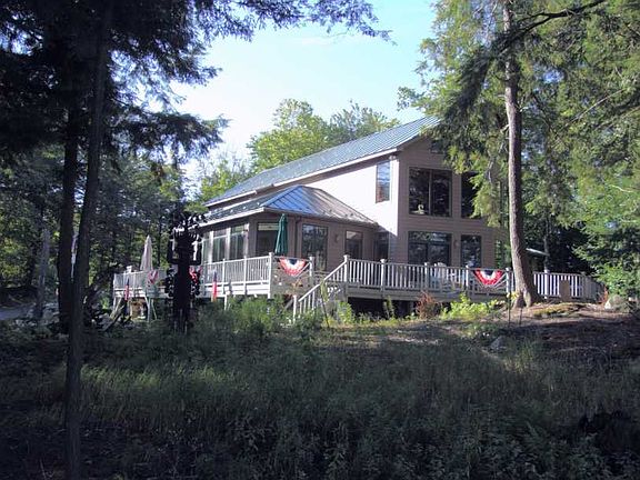 Call List agent to view! Sited nicely to enjoy views of the foothills of the Adirondacks. Relax on the deck that wraps around the two sides of the house giving views of Peck Lake from both sides. The deck furniture is included with this house. This is an impressive house with all the bells and whistles that you would expect! This home was custom built in 2002 (builder is Michael Beaver). It is located within the Blue Line of the Adirondack Park, in the town of Bleecker, New York. The pontoon boat and dock are also included with this home! All the landscaping is done! Property includes two sheds to store garden tools, boating items, lawn mower, and more. This home has 3,240 square feet above ground living space, with approximately 1,900 square feet of finished walkout basement. Sited on over an acre this is one of the most private lots on the lake! It is the last house on the South Shore! The Main Floor: The Great Room is spectacular with a soaring ceiling and full wall of windows overlooking Peck Lake. A magnificent antler chandelier hangs in the great room. This room has two access doors to the deck. A formal Dining Room is generous in size and easily accommodates the largest gatherings. This room also has access to the deck. The gourmet Kitchen has plenty of counter and storage space, with a breakfast bar for casual dining. The Master Bedroom Suite is on the main floor, with two generous walk-in closets. French doors open to the lakeside deck. A roomy en-suite bathroom has dual sinks, privacy toilet, whirlpool tub, and walk-in shower. A Second Guest Bedroom is on the main floor and has a walk-in closet. A Full Bath next to the guest bedroom includes a walk-in shower and the laundry closet. The Hall has two closets, one for coats and one for storage. The Second Floor: The second floor has an open Loft, with lake view, perfect for the home office. From the loft, enter into a roomy suite style Bedroom with adjoining en-suite with double sinks, walk-in shower, and privacy toilet. Ground Level:The finished basement has a newly refinished half bath. The half bath could easily be converted into a full bath, making a third suite style bedroom.The basement contains an electrical room, a furnace room, a coat closet with storage, and a large walk-in storage closet. Easy access to the heated garage from the basement. House features: Standing seam metal roof; Pella thermal windows with Comfortex shades; permanent Carrier air conditioning units in the great room, upper bedroom, and master bedroom; Buderus Logano G234 propane furnace with continuous hot water feed system and 10 zone radiant heating system; new (2016) hot water tank; a heated 2 car garage; central vacuum; a Harmon Pellet Stove in the great room for chilly days when you may not want the radiant heat on; drilled well; Culligan water system (sellers own); private septic; Time Warner Cable TV, Phone, Internet, and Security System. There is much to do locally no matter what season you prefer. Access to State snowmobile trails are just off the property. Royal Mountain Ski Area is a short drive away. The Adirondack Museum in Blue Mountain Lake, and the Wild Center in Tupper Lake, NY are great ways to spend the day, and multiple golf courses are near by. These are just a few of the sites and activities. Saratoga, Albany, and Utica are an hour away; New York City is approximately 3.5hrs. Located in Fulton County, Town of Bleecker, and Gloversville School District, taxes are approximately $21,000. This is a true gem on a quiet lake that does not allow jet skis or motors over 40 horsepower. Peck Lake is stocked for enjoyable fishing! Please have your finances in order to view.