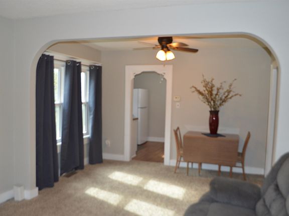 Charming 1920's one-of-a-kind home in great condition! Large open living room with sets of triple and double windows and ceiling fan. Dining room open to the living room with an arched opening, double windows and ceiling fan. Super kitchen with white cabinets, ceiling fan, laminate floor, gas range and frig. Two nice bedrooms with an abundance of windows and one with great built-ins with mirrors. Bath with solid surface 4ft shower, window, vanity and medicine cabinet. Great main floor laundry/mud room. Nice deck on back of home overlooking a deep backyard. 1 car detached garage. Partial basement with mechanical and storage space. Roof and High Efficiency HVAC are less than 10 years. Newer all weather siding and triple pane windows!