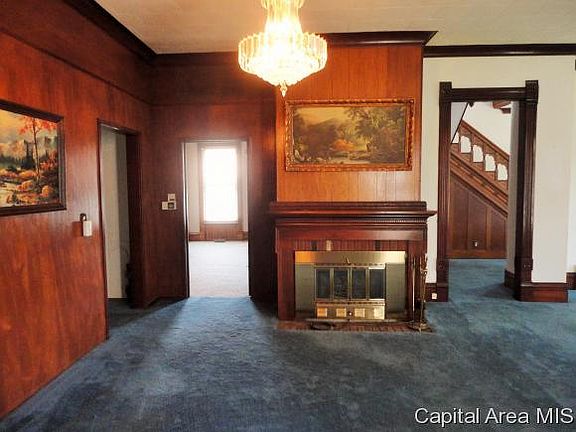 Victorian home w/ beautiful wood carved open staircase. Large attic. Lots of natural light. Open living room w/fireplace. Att. 2 1/2 car garage. Nice bsmt. Double lot. 33 newer on 2nd floor, attic & bsmt. Solid well kept home. Hardwood under some carpets. Bsmt interior walls poured over brick in 2000. Furnace '09, chimney & foundation tuck pointed in '09. Water pipes & air in '09. Gutters in 01', roof in '05, dishwasher '13. 1 bed apartment in rear w/ LR w/fireplace, kitchen & bath has separate entrance from either outside or garage. Washer/dryer hookups in garage. Double lot.