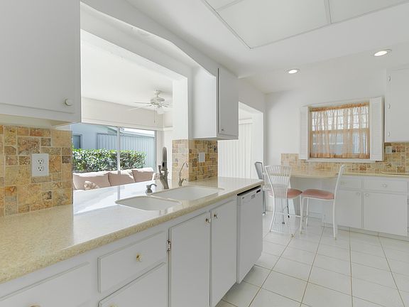 Lovely updated Edgewood Model Single Family Home in popular Leisureville, a 55+ community. 2 Bedrooms, 2 Full Bathrooms plus 1- Car Garage with Full Size Washer and Dryer. Updated eat-in kitchen with built in table for convenience. Both bathrooms have also been updated. Tile flooring in oversized 30' X 10' Family Room, perfect for entertaining. Greenspace view in rear from dining area. Palm Beach Leisureville boast 3 Pools and Clubhouses with many clubs and activities to choose from. Free Golf on Par 3 18 hole golf course. Home has Paid Rec. Lease. Pet friendly community. Water Heater & A/C - 2021, Roof 2004.