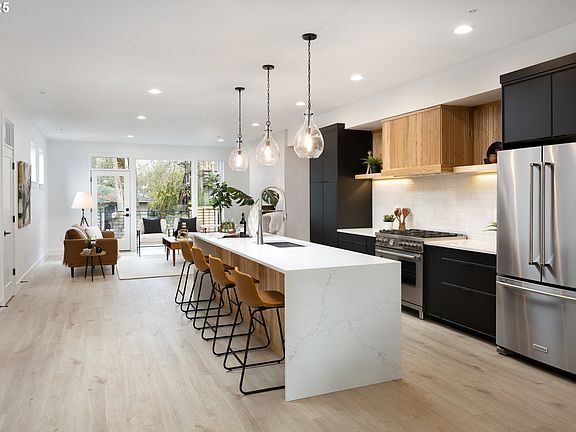 A stunning modern masterpiece designed for luxurious Pacific Northwest living, this home combines bold architecture with thoughtful flexibility—featuring a Shelter Solutions Certified ADU to accommodate multi-generational living or income potential. Just moments from Lewis and Clark College, the home’s striking exterior makes a lasting impression with a rich blend of concrete, metal, and wood textures. Custom built-in planters, textured concrete accents, sleek metal railings, and an 8-foot wood-framed glass front door create a sophisticated welcome.Step inside to a light-filled open-concept living space where floor-to-ceiling windows bring the outdoors in. The designer kitchen is both elegant and functional, featuring a quartz waterfall island, warm wood accents, sleek cabinetry, and a discreet pop-up power charger—perfect for entertaining or everyday cooking.The primary suite offers a serene retreat with a spacious walk-in closet and a luxurious glass-enclosed shower. A stylish loft with an accent wall provides versatile space for a private office, lounge, or can be enclosed for additional privacy.The attached ADU includes a separate rear glass-door entry and covered outdoor space, allowing for independent living or seamless integration into the main home—ideal for guests, extended family, or rental income. Interested in short-term rental possibilities? Buyer to verify current City of Portland guidelines.Expertly crafted by Stone Creek Building and Shelter Solutions, this home is proudly Earth Advantage Certified—bringing sustainable craftsmanship and cutting-edge design together in one exceptional property.