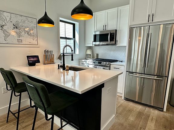 This bright and spacious 2-bedroom, 1-bathroom condo built in 2020 offers a stylish two-level layout with excellent natural light, hardwood floors, and high ceilings throughout. The modern kitchen is equipped with quartz countertops and stainless steel appliances, opening seamlessly into the comfortable living and dining area. Step outside to your backyard patio, perfect for relaxing or entertaining. Additional features include an in-unit washer & dryer, central heating and cooling, and an extra storage closet located outside the unit. Street parking is consistently available. Located less than a 5-minute walk to the Blue Line, with quick access to Logan Airport, local parks, restaurants, and scenic waterfront paths you'll enjoy the best of East Boston living. Highlights: Two-level layout with abundant natural light High ceilings throughout Modern kitchen with quartz counters & stainless steel appliances Open living and dining area 2 spacious bedrooms with ample closet space 1 full bathroom In-unit washer & dryer Central heating & cooling Backyard patio Extra storage closet (outside unit) Utilities: Water/sewer and trash included in rent Tenant responsible for electricity and gas only Call, text, or email today to schedule a showing! Third party credit and income verification completed at no additional cost Available October 1 First month, last month, and one-month security deposit required at lease signing Ideally 12-month lease, longer lease will bring down cost, shorter lease will increase cost Tenant must carry renters insurance No smoking Pets considered ($100/month per pet)