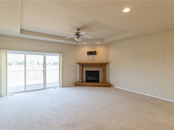 Fall in love with this gorgeous 4 bedroom ranch style home w/ 3 car garage backing to LEGACY GOLF COURSE!! Enjoy resort style living with community POOL, clubhouse & play areas included with HOA. The main level has a large living room with cozy gas fireplace & 3 bedrooms! Primary suite is very spacious with tray ceilings, en suite bath, jacuzzi tub & large walk in closet. Lower level has daylight windows, living room, 4th bedroom & 3/4 bath. Tons of updates/upgrades including epoxy garage floor, metal shelving/workbench, new carpet in lower level, roof, HVAC, and some blinds, all new in the last 2 years. You will love your gorgeous SUNSET VIEWS from your deck overlooking practice range area. (Has retractable Sun Setter awning).