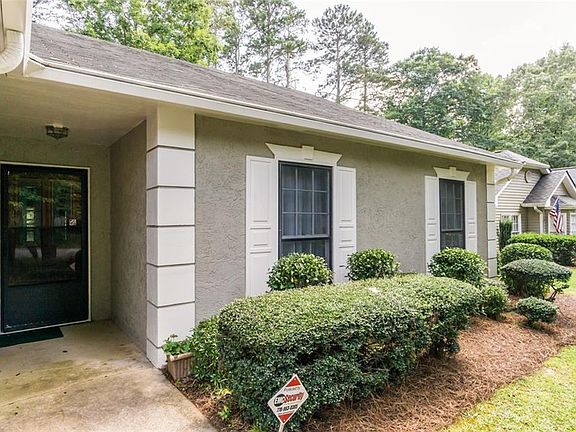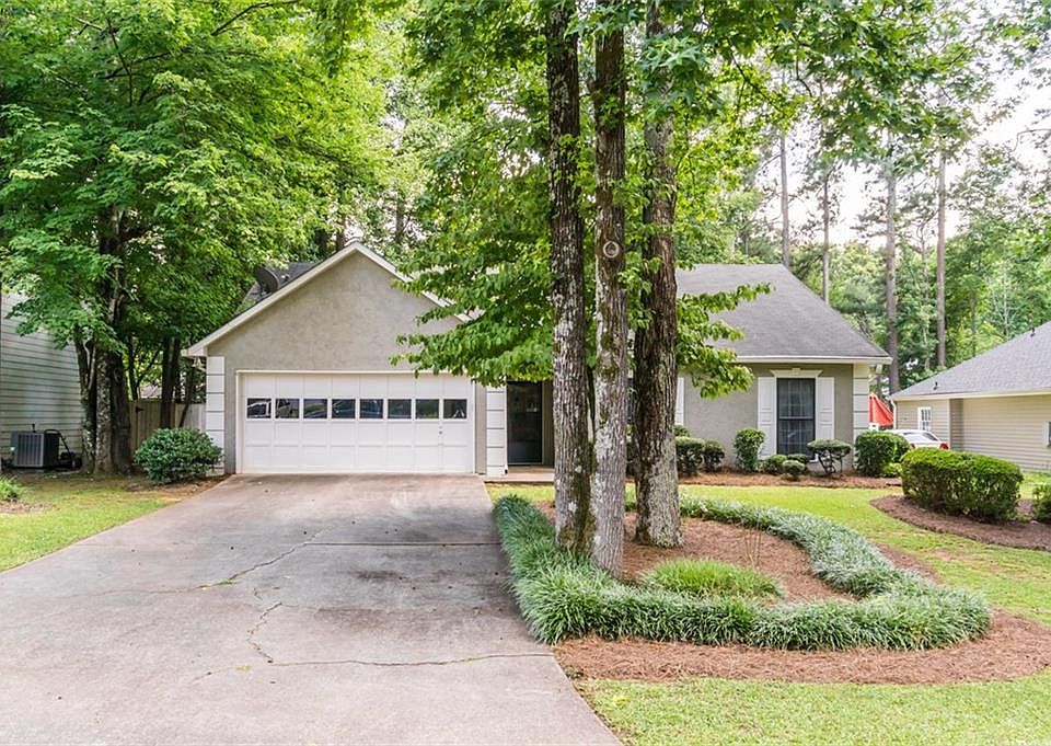 Adorable Ranch home close to EE Robinson park and Sugar Hill Greenway! Living/Dining area includes freshly cleaned carpeting and built in entertainment system and brick fireplace with gas logs! Eat in kitchen has pantry and stove and dishwasher. Master bedroom features large en-suite with dual vanity, huge walk in closet and private toilet area. 2 secondary bedrooms and bathroom complete the interior. Level Backyard. Garage has custom built in cabinetry. Newer Ac Units! Close to Sugar Hill Elementary and shopping, lake and recreation!