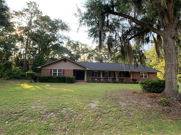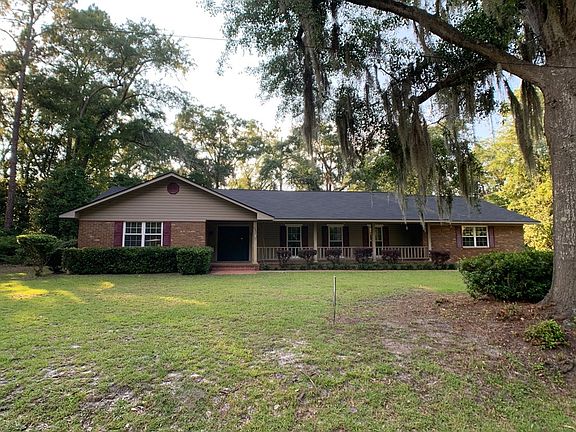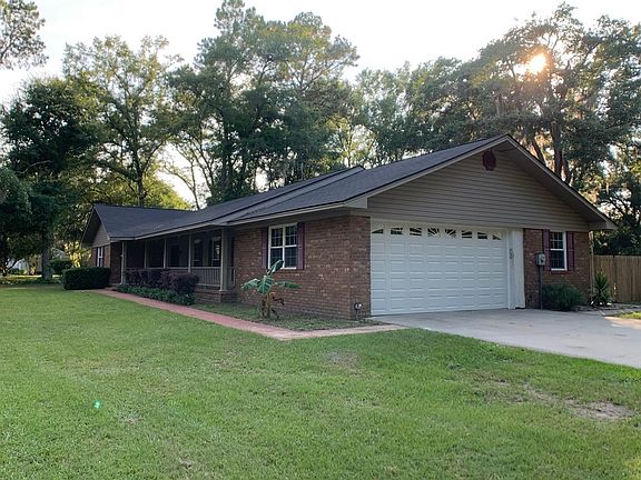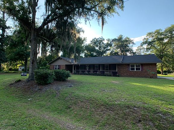 Recently updated! All brick 3 bed & 2 double vanity baths; 1/2 acre In Town! Large front porch. Side loading 2 car garage with a 1 year old garage door. 1 year old roof. Solid wood cabinets, closet doors & doors thru-out. Water well with electric pump for sprinkler system (front & back). RV carport can cover a 40 ft RV. Large storage shed with electric. living room & den with brick surround fireplace (electric - blows hot air). New flooring, fridge, stove top, dishwasher & countertops. Fresh paint throughout. Blueberry bushes, lemon tree & banana tree on back of home. Master bedroom & Den both have french doors that lead out to a covered back patio & extends the length of the back side of home. Shed is 12.5 by 15.5
